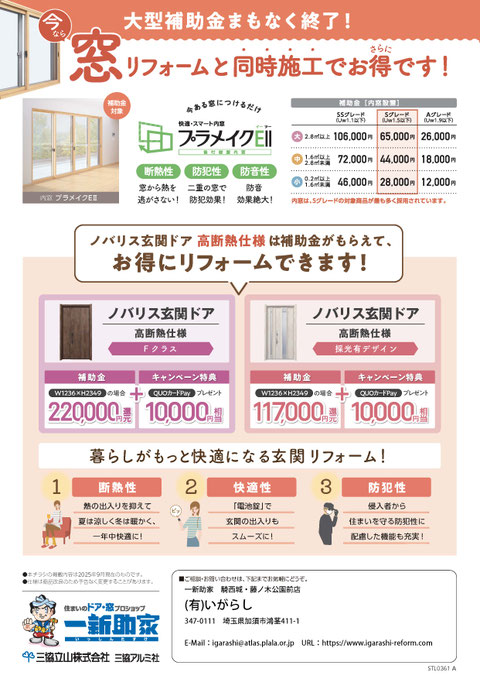 工事費用の約50%負担しますので、高性能の窓・玄関の改修をして
