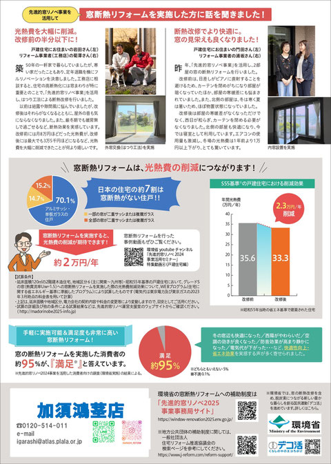 お客さまから「ガス入り断熱複層ガラスの効果は大で、部屋の暖かさが断然違うね! これで隙間風のない暖かい冬なるよ。思い切ったけど生き金になった。」とのご意見を頂きました。